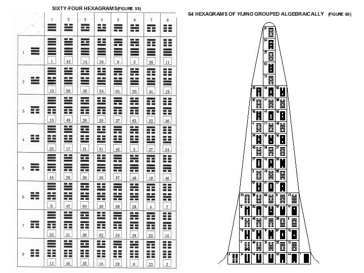 The complexity of the Yijing symbols unfolds at an exponential rate (logarithm 2). Log 2 is used because 2 refers to the duality (liangyi) within unity. If the exponents are spheres, their exponential sequence forms a pyramid, which reflects Confucian hierarchy, and a quantitative existence.
